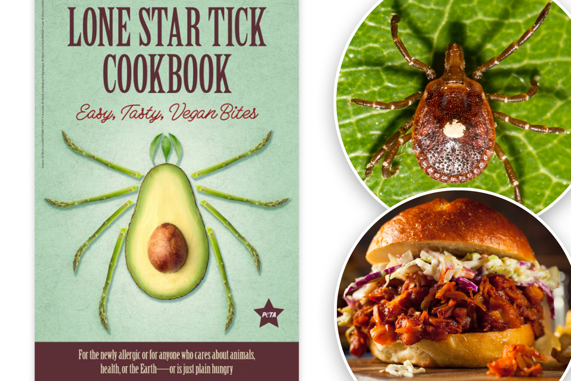 Dishes “Lone Star Tick Cookbook” from 15 Southern Southern Recipes for people with alpha-gal, including a breakfast biscuit and gravy sandwich, chili, a spicy “chicken” sandwich, beef-free tacos, “chicken” under and a Philly cheeseteak.